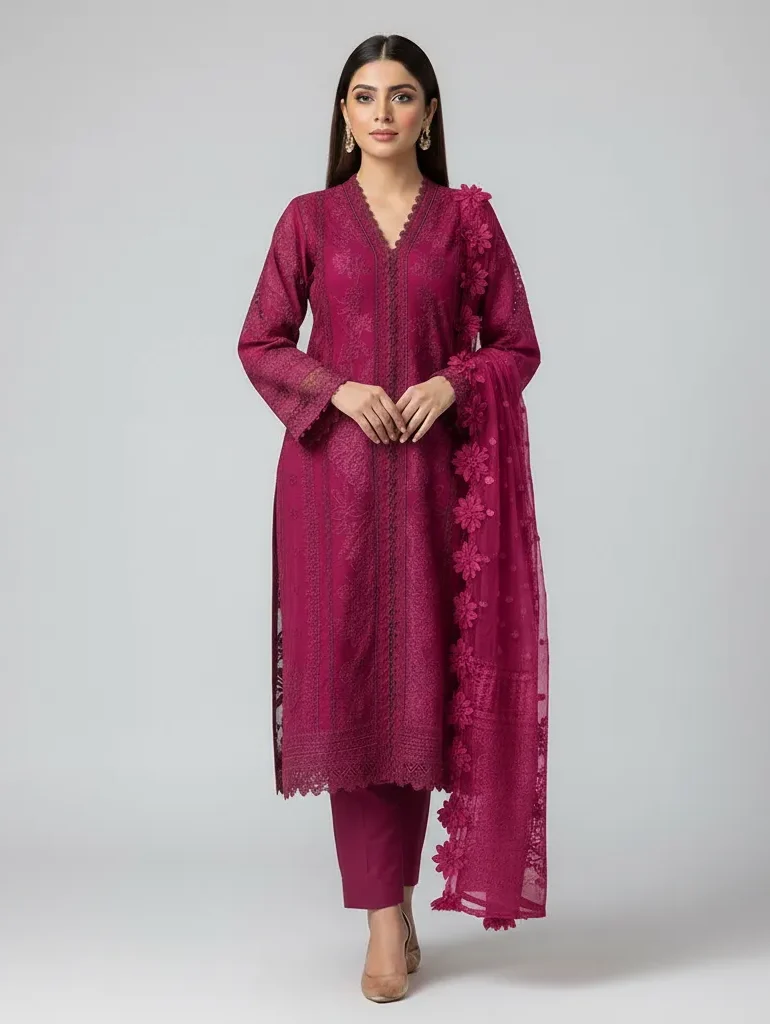 - Dupatta Fabric : CHIFFON STUFF EMBROIDERED DUPATTA WITH 3D LACES