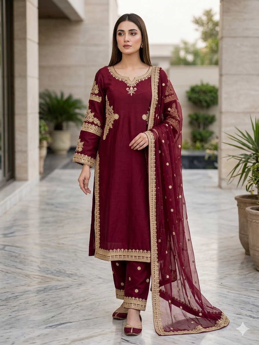 - Trouser Fabric:Â VISCOUS STUFF EMBROIDERED