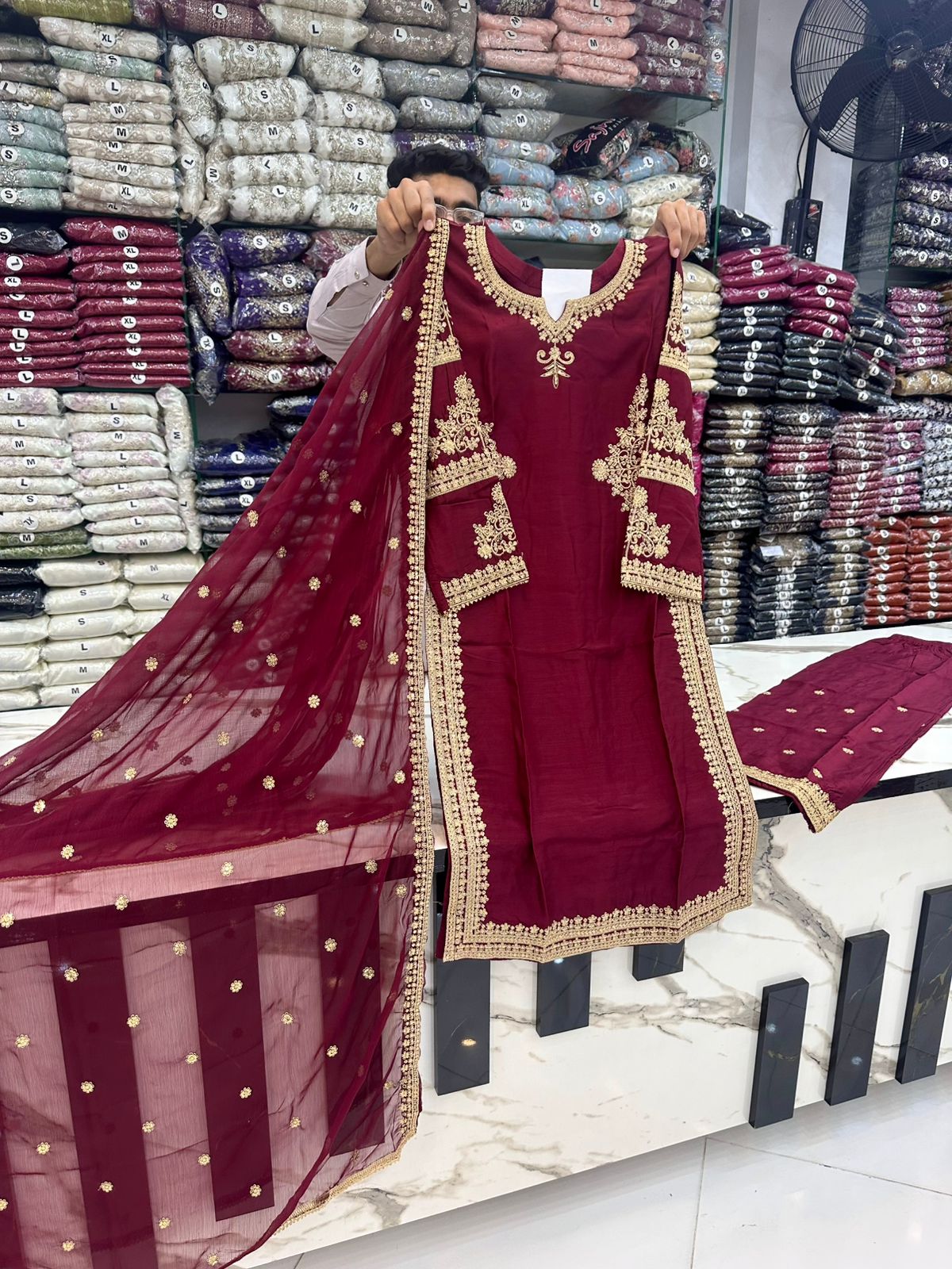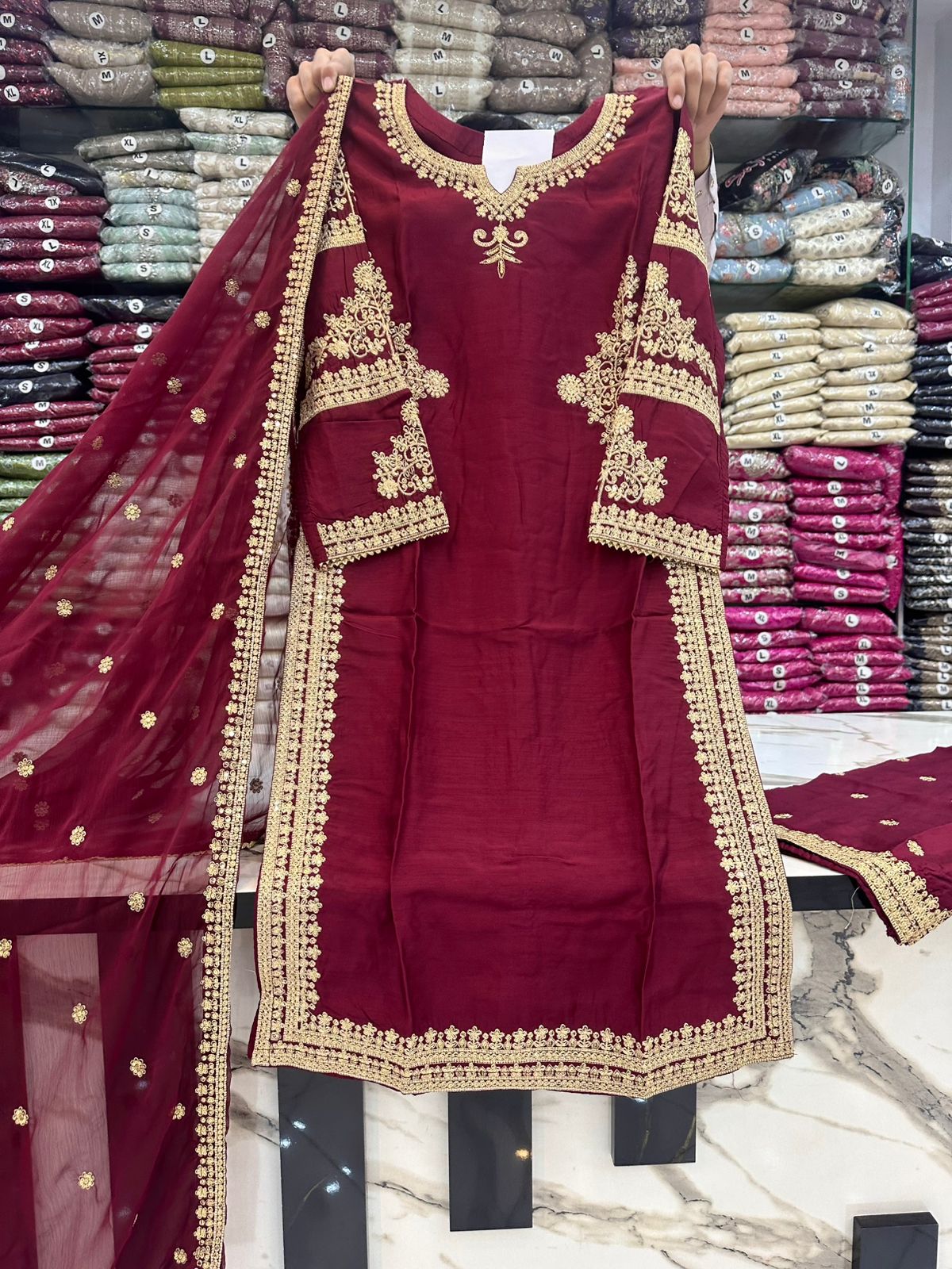 - Dupatta        : CHIFFON STUFF EMBROIDERED DUPATTA
