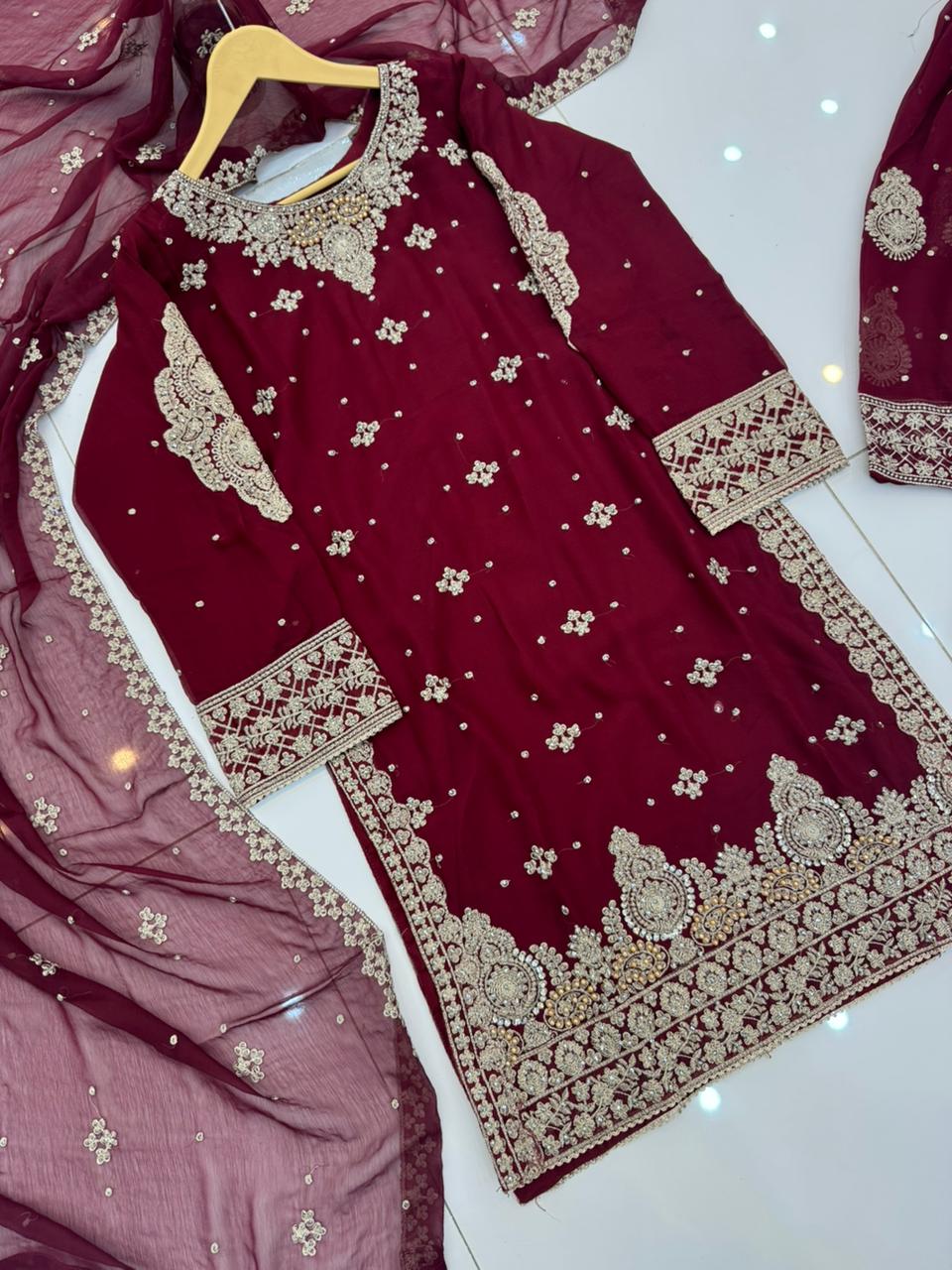 - Trouser      : CHIFFON STUFF EMBROIDED GARARA
