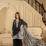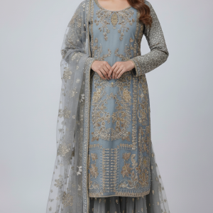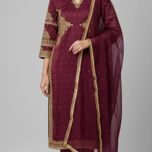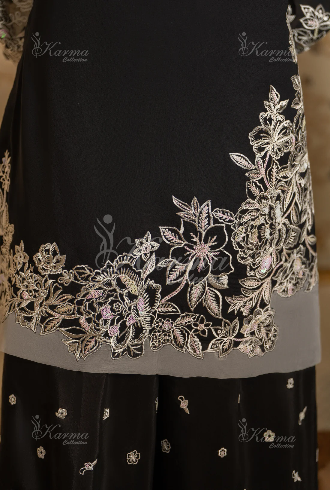 Georgette chiffon shirt with applique patches on neckline, sleeves and border