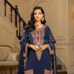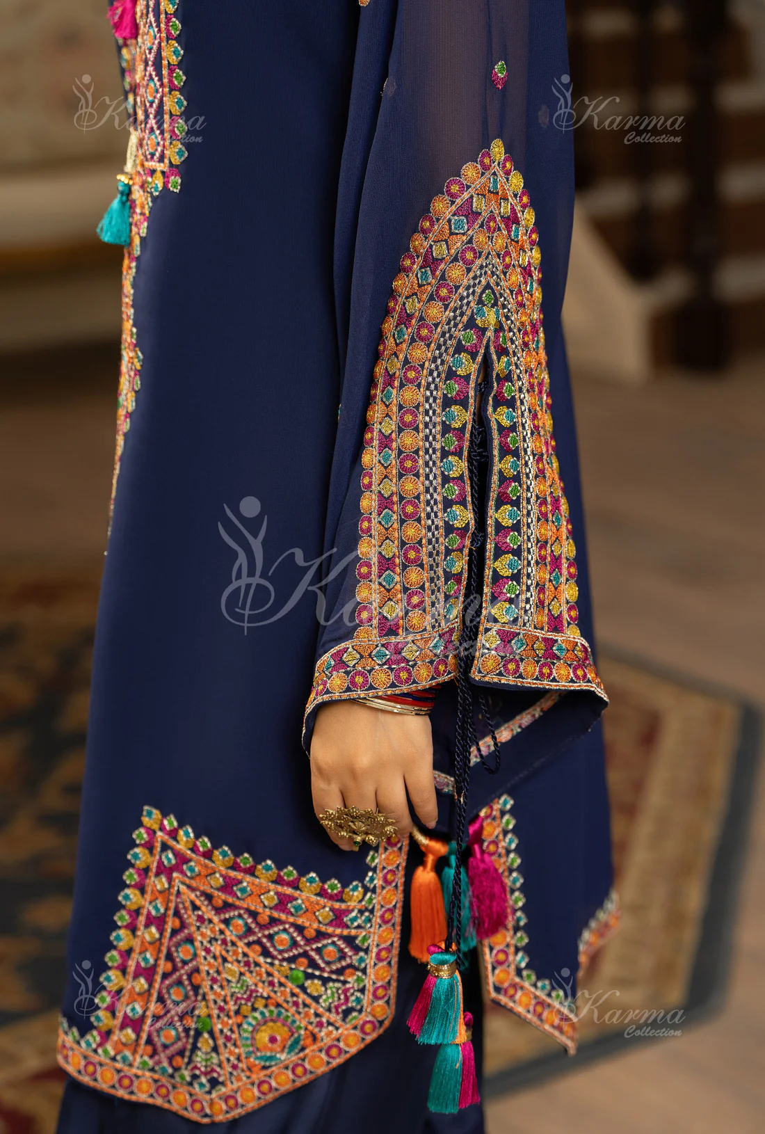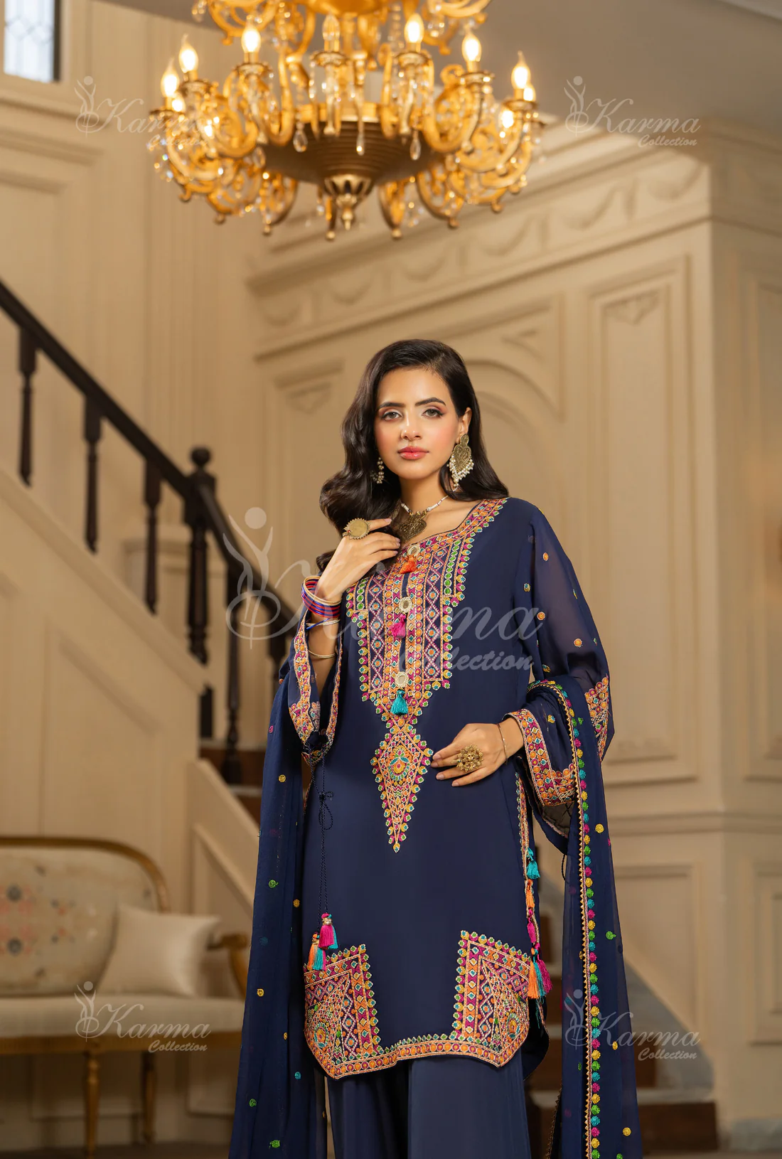 Georgetta chiffon embroidered shirt with tussels on chalk and dori on sleeves