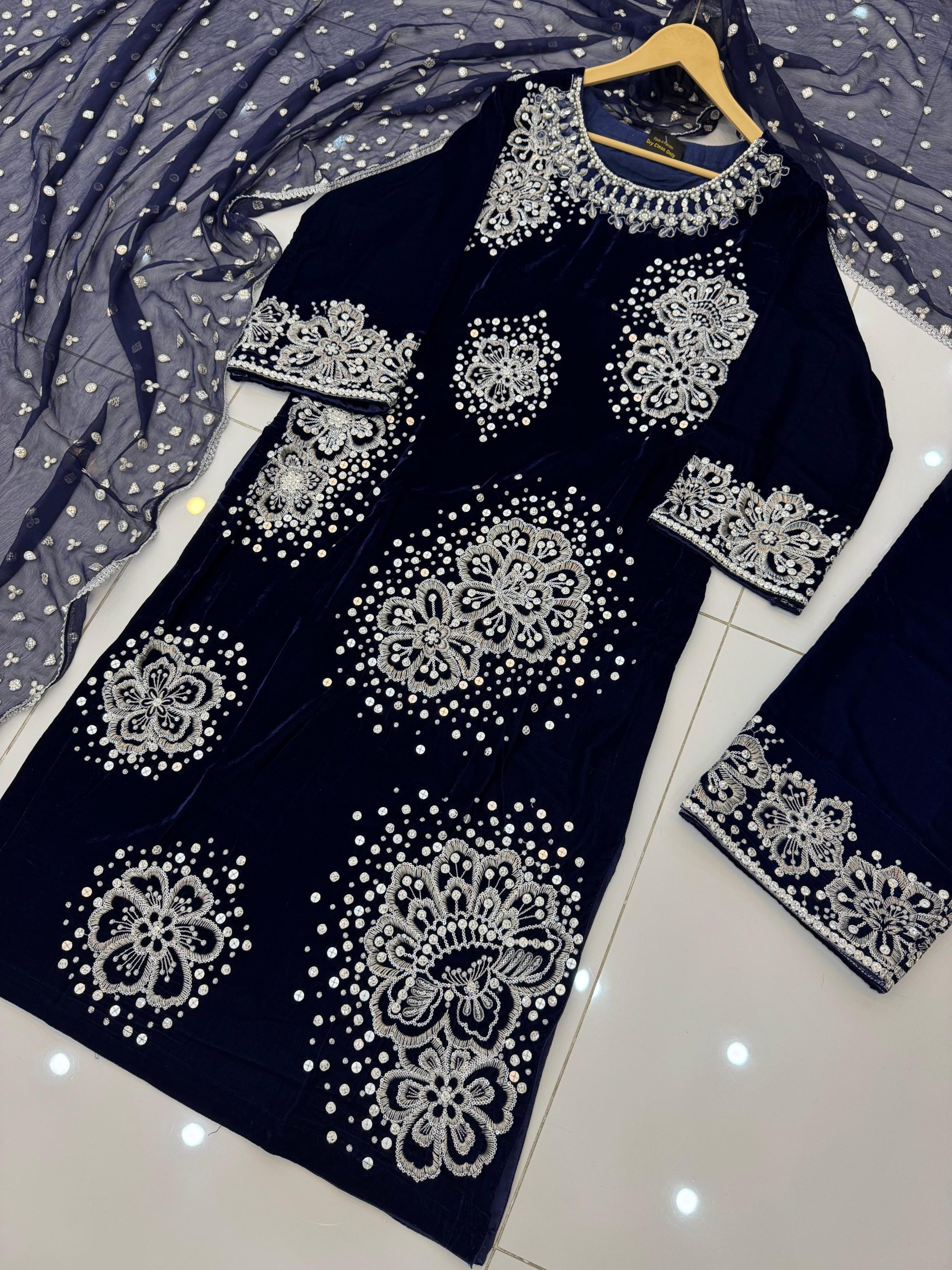 - Trouser Fabric   : Embroidered Velvet Trouser