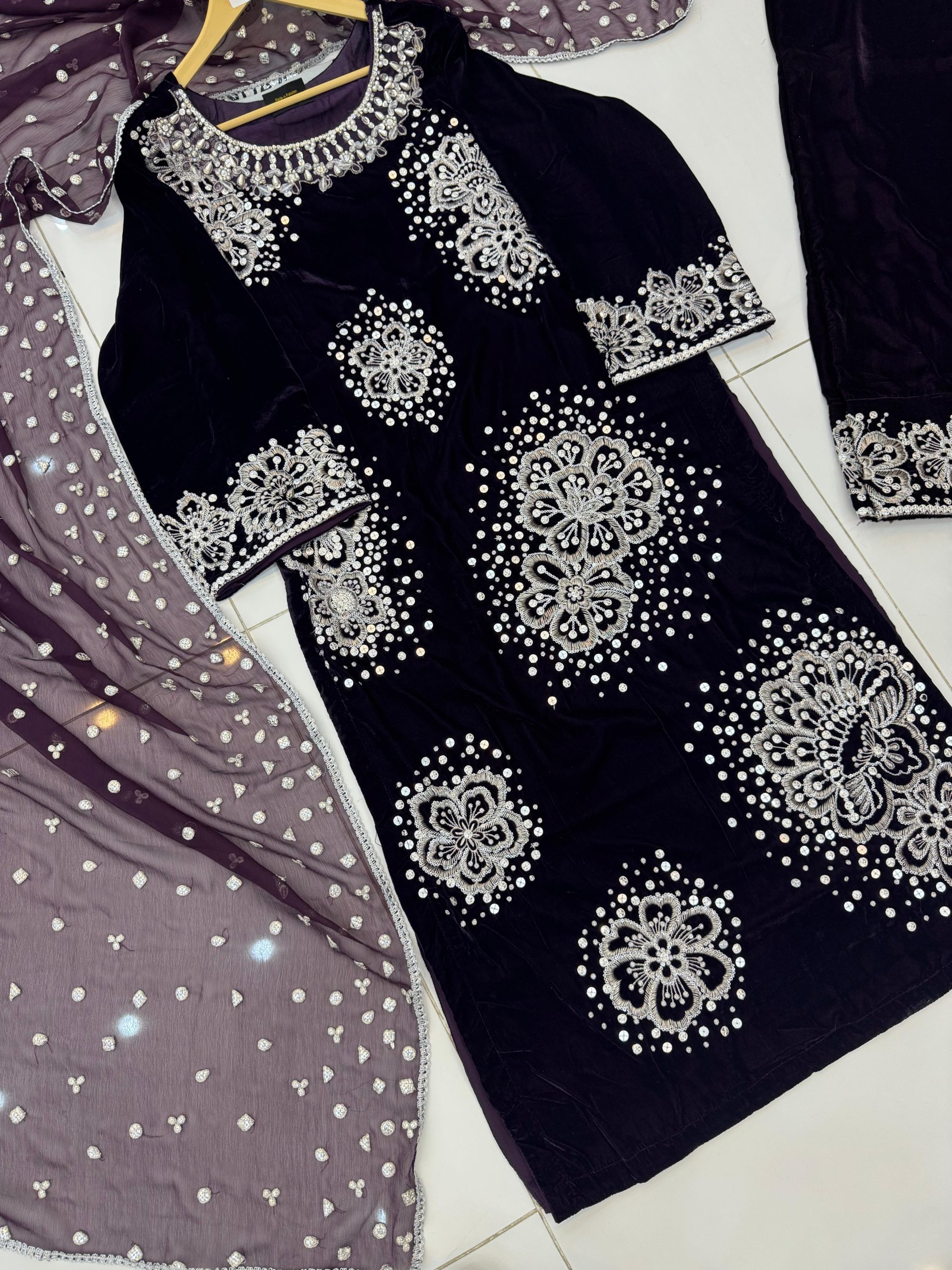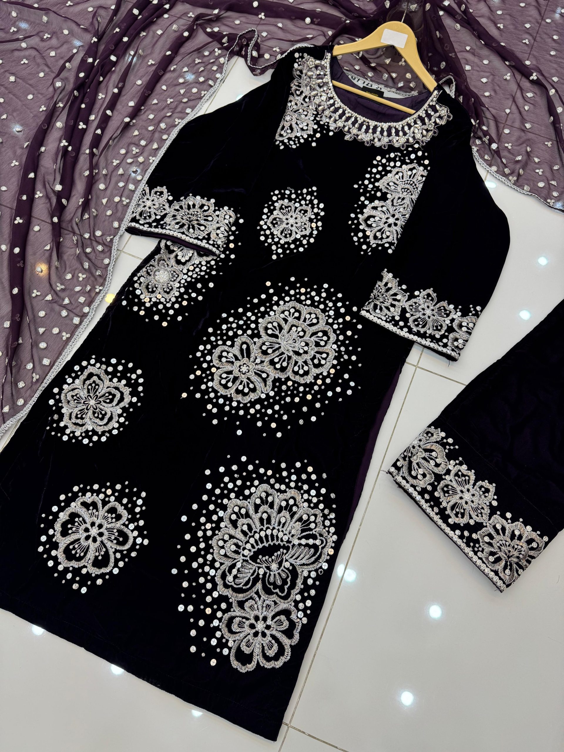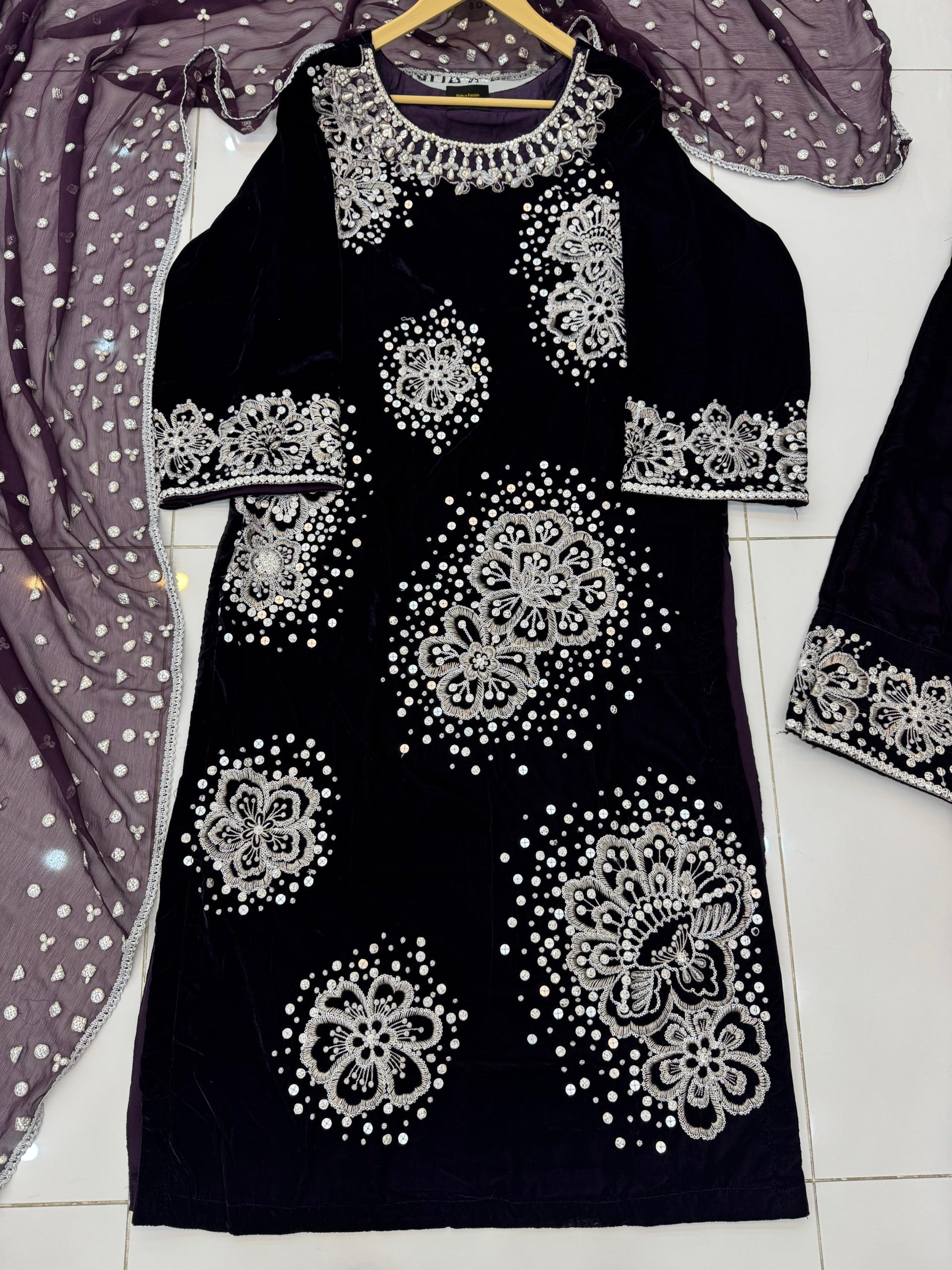 - Trouser Fabric   : Embroidered Velvet Trouser