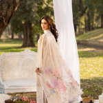 - Shirt:Embroidered Long Shirt with Cutwork and Kaviya Patches on Border and Neckline with Beaded String and Milky Lace on Border