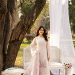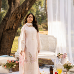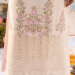 Embroidered Long Shirt with Cutwork and Kaviya Patches on Border and Neckline with Beaded String and Milky Lace on Border