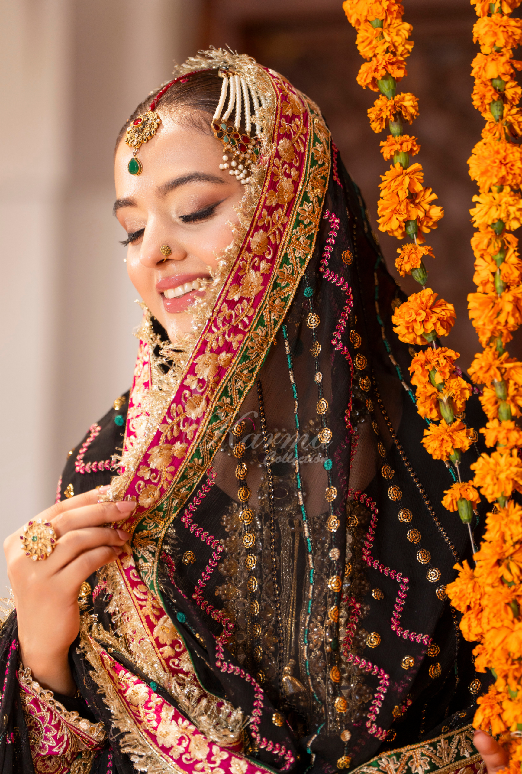Crinkle Chiffon Shirt with Adda Work and Dori, Tussels on Neckline and Patches on Borders Paranda Work on Chalk