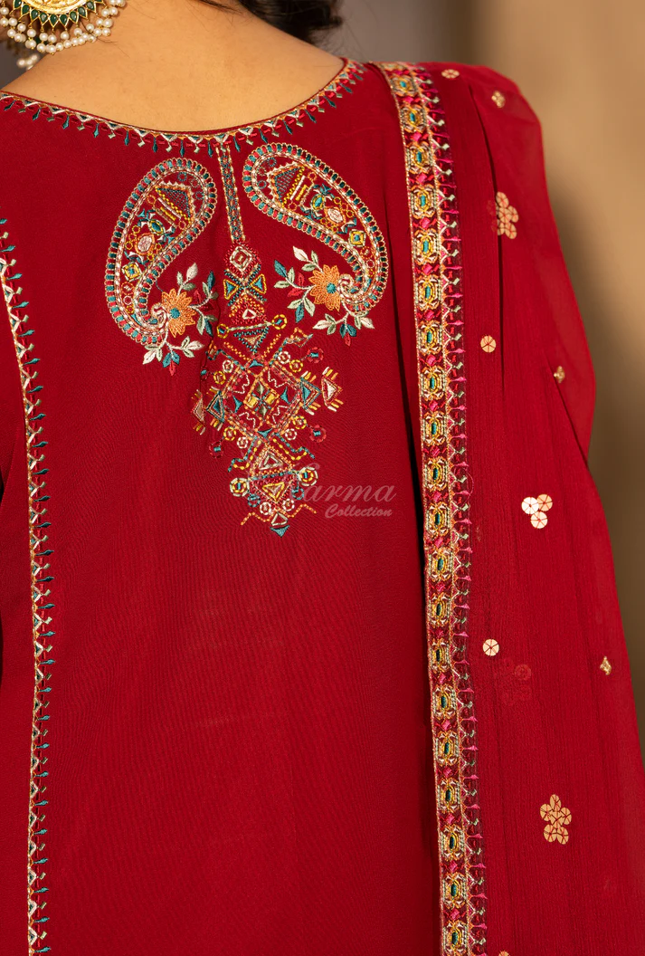 - Shirt Fabric     : Georgette Chiffon Shirt with Multi-Thread Embroidery
