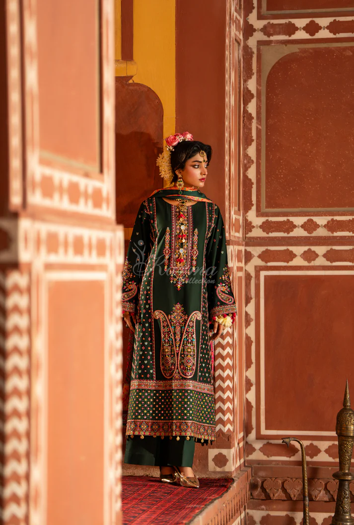 - Work detail     : Thread work and Tilla work in Kashmiri Stitch and 3 patches                  on the border, Tussels on Sleeves and Neckline.