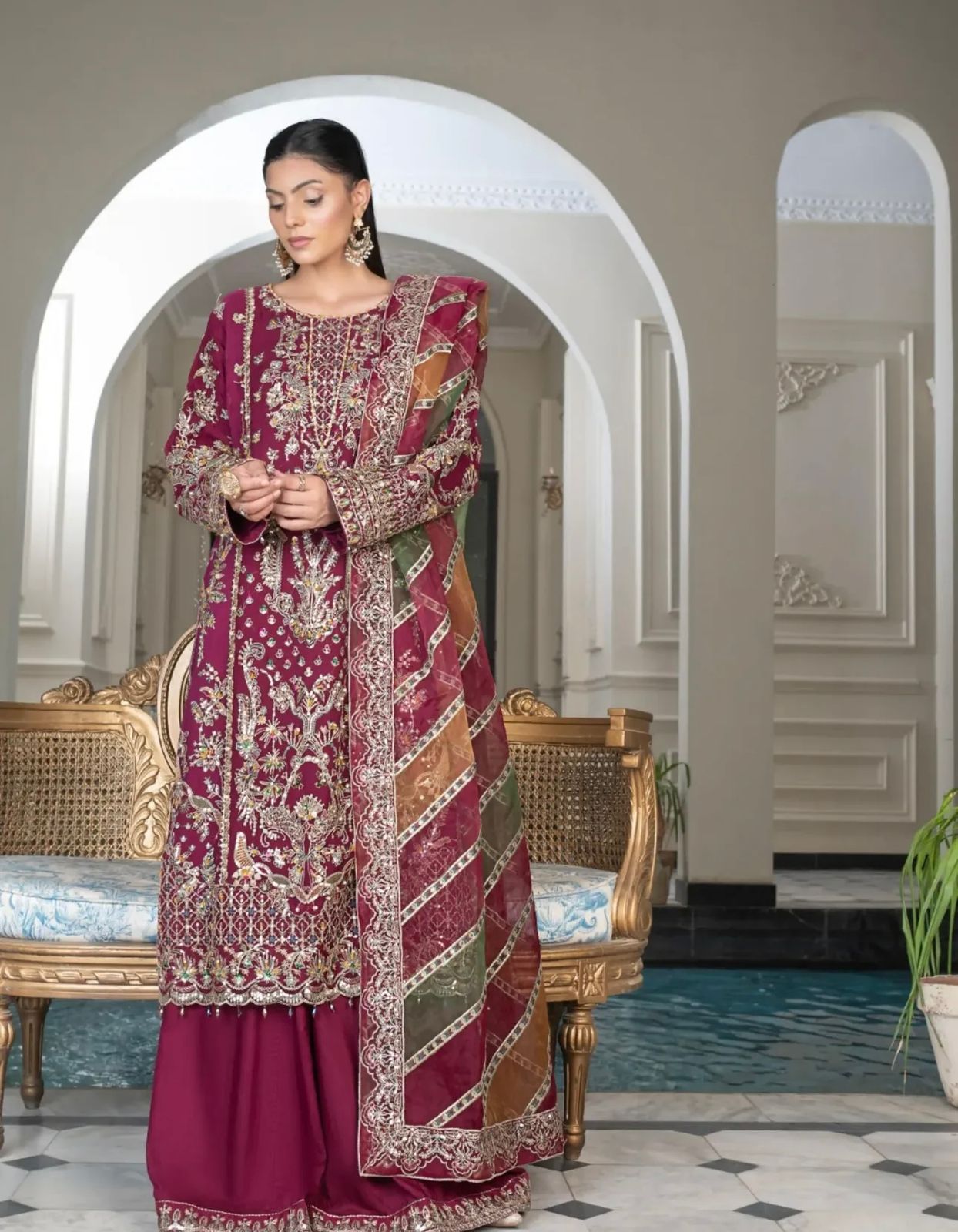 - Dupatta Fabric :Â ORGANZA STUFF EMBROIDED DUBATA