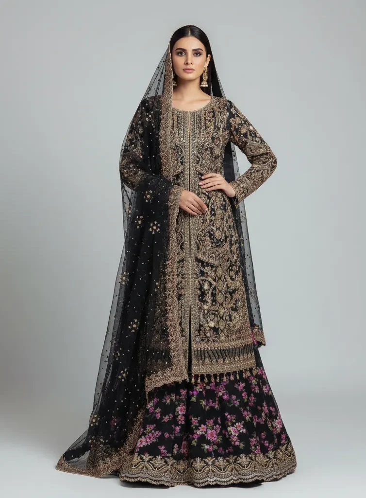 - Dupatta Fabric :Â Â ORGANZA STUFF EMBROIDED DUBATA
